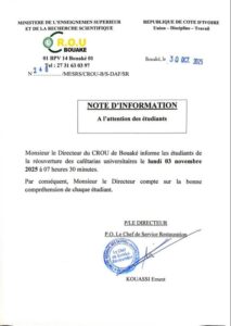 Le Directeur des Ressources Humaines de l'Université Alassane Ouattara